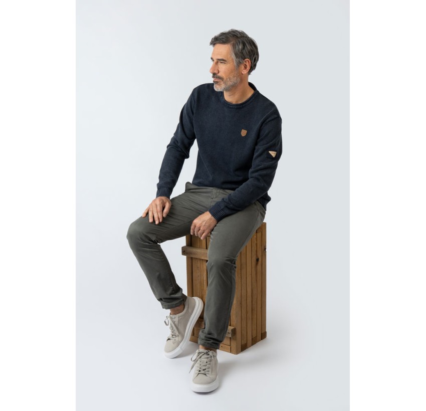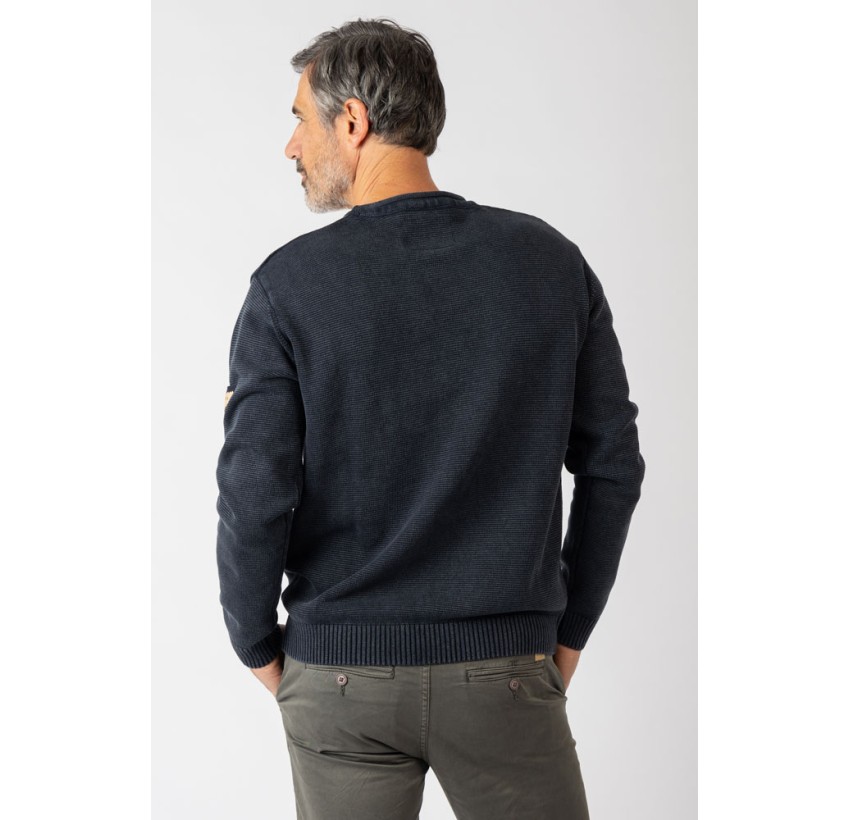 Siente el espíritu Privata con jersey cuello redondo, tejido confortable y agradable. Tejido lavado dándole una apariencia diferente.